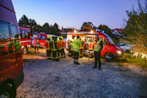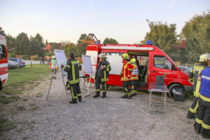 Um Pünktlich 18:30 alarmierte die Leitstelle Rems-Murr in Waiblingen die Meldeempfänger der Feuerwehren und des DRK im Schwäbischen Wald zur Einsatzübung im Schwabenpark.